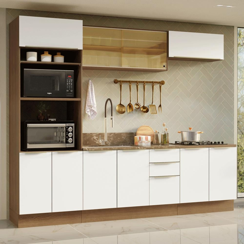 Armário de Cozinha Completa 270 cm Rustic/Branco Veludo Lux Madesa 06 Rustic/Branco Veludo