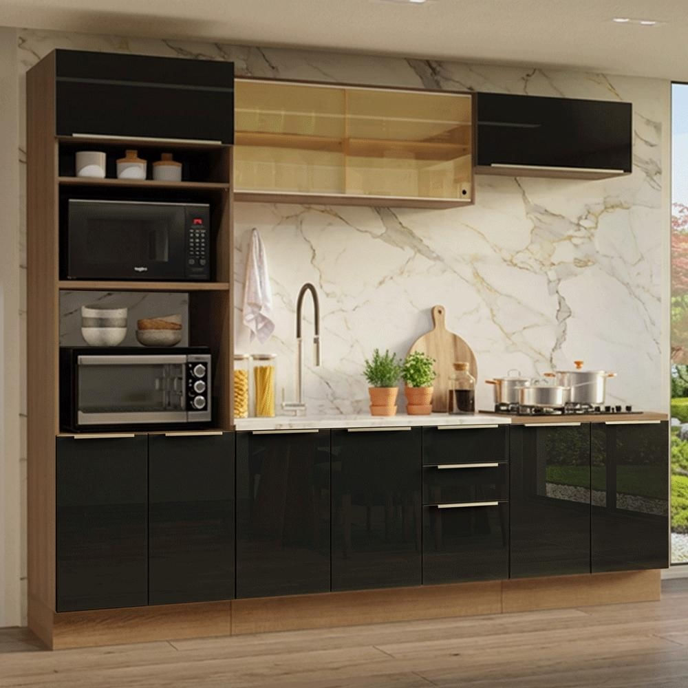 Armário de Cozinha Completa 270 cm Rustic/Preto Lux Madesa 05 Rustic/Preto