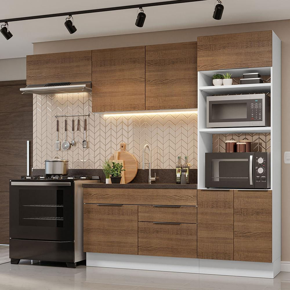 Armário de Cozinha Completa 270cm Branco/Rustic Stella Madesa 10 Branco/Rustic