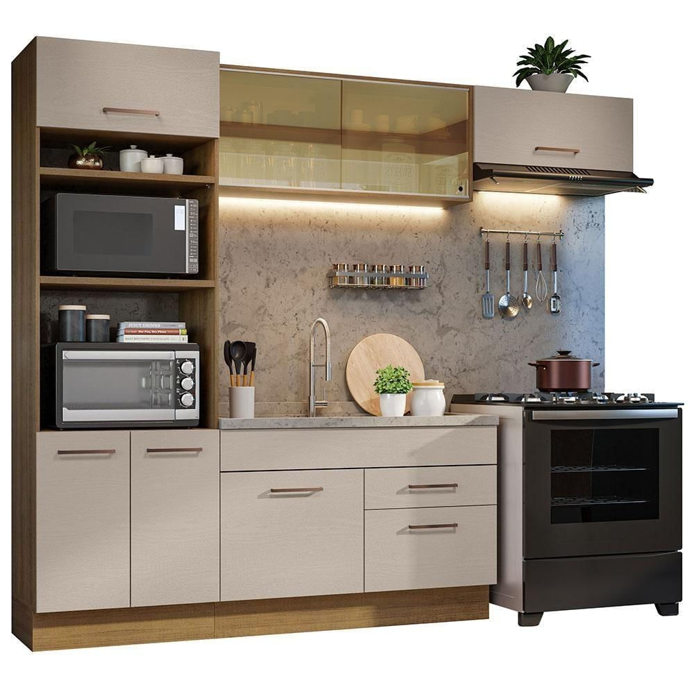 Procurando por uma cozinha bonita, moderna e funcional? Então confira esta versão completa da linha Agata da Madesa. Fabricada com alto padrão de qualidade, possui puxadores com alça em alumínio, gavetas com corrediças telescópicas de abertura total, vidros reflex no aéreo e as portas com amortecimento para fechamento suave e pés em PVC com ajuste de altura, com rodapé removível em MDP