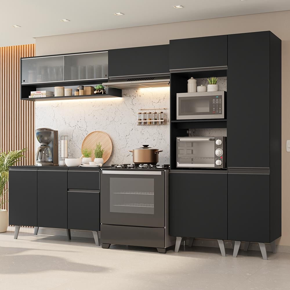 Armário de Cozinha Completa 300 cm Preto Nice Madesa 08 Preto