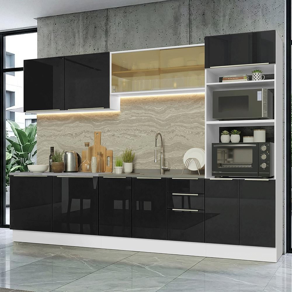 Armário de Cozinha Completa 310 cm Branco/Preto Lux Madesa 04 Branco/Preto