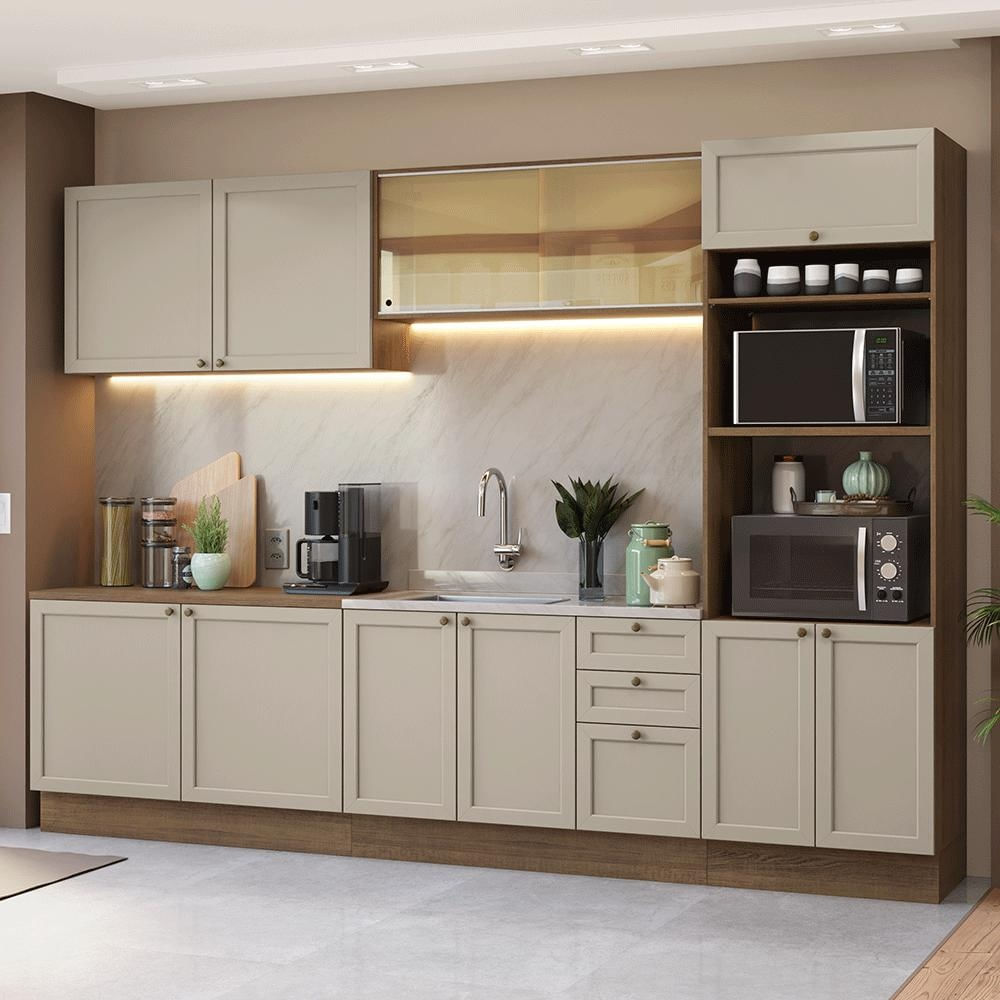 Armário de Cozinha Completa 310 cm Rustic/Crema Vik Madesa 01 Rustic/Crema