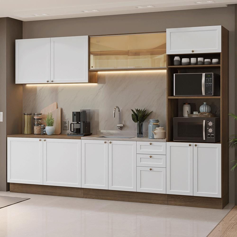 Armário De Cozinha Completa 310 Cm Vik Madesa 01 Rustic/branco