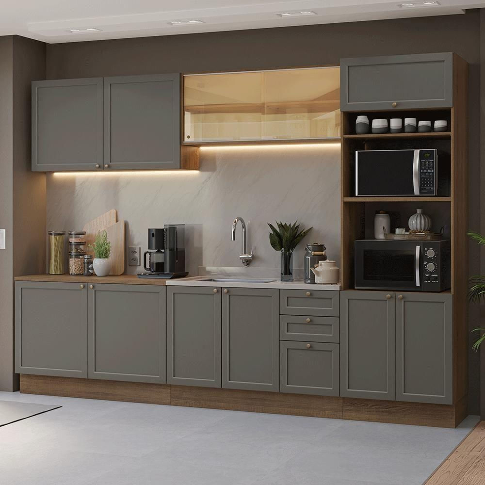 Armário De Cozinha Completa 310 Cm Vik Madesa 01 Rustic/cinza