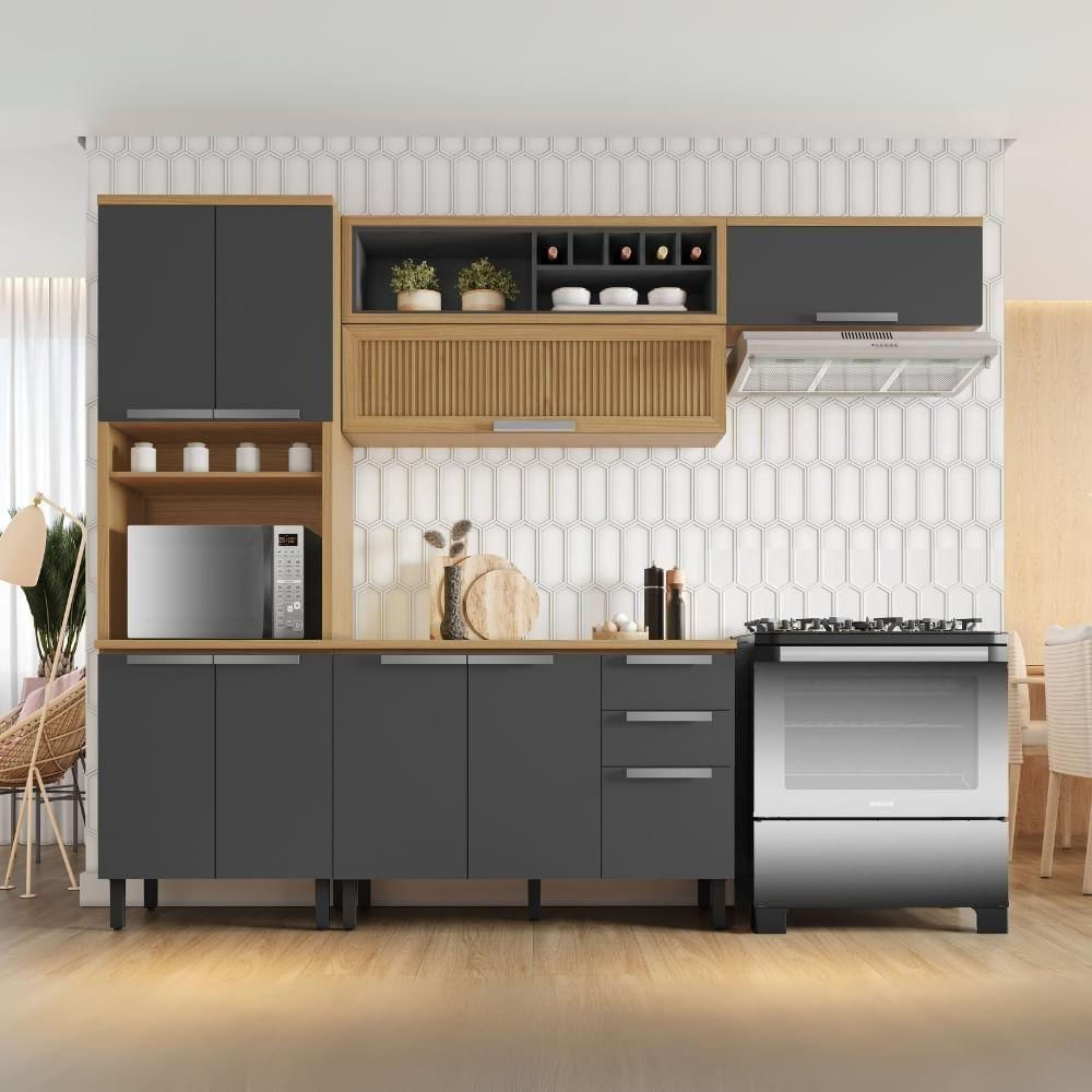 Armário De Cozinha Completa 4 Peças 270cm New Porto Grafite Madeira Itatiaia