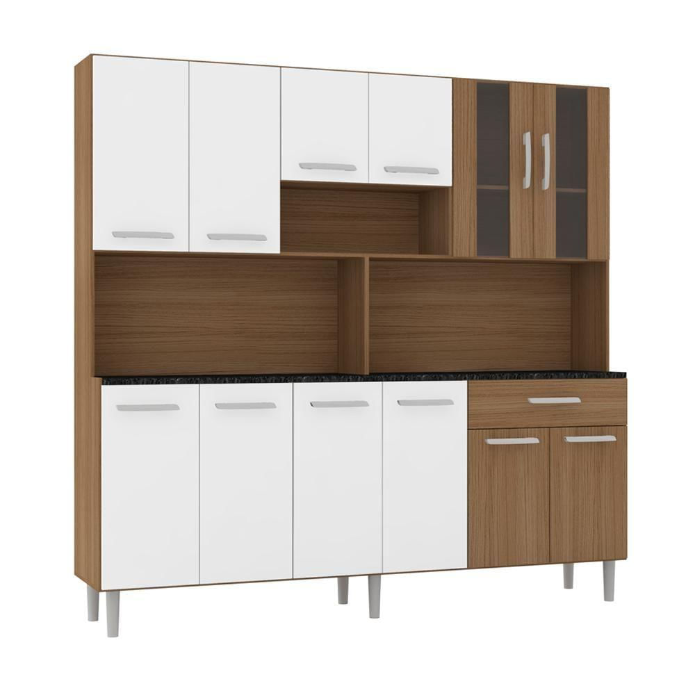Armário De Cozinha Completa Compacta Clara Carvalho / Branco Carvalho / Branco