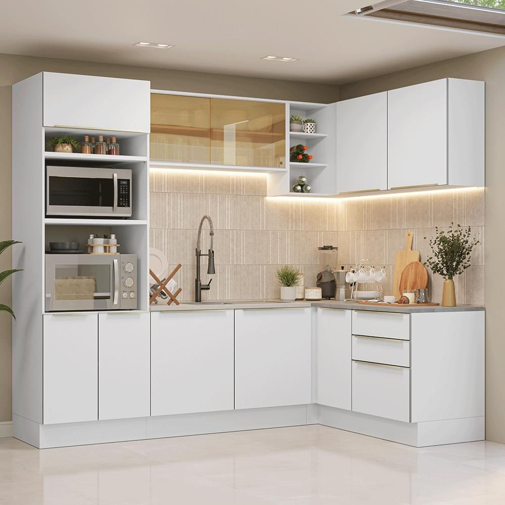 A cozinha de canto da linha Lux é ideal para aproveitar melhor cada espaço, trazendo mais organização e praticidade.