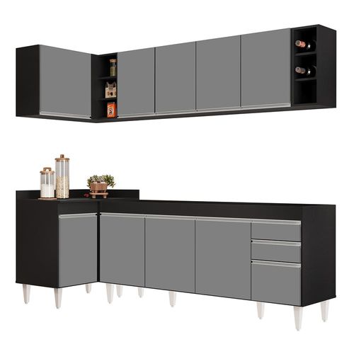 Armário de Cozinha Modulado de Canto Direito 5 Peças CP43 Balcão sem Tampo Preto/Cinza - Lumil