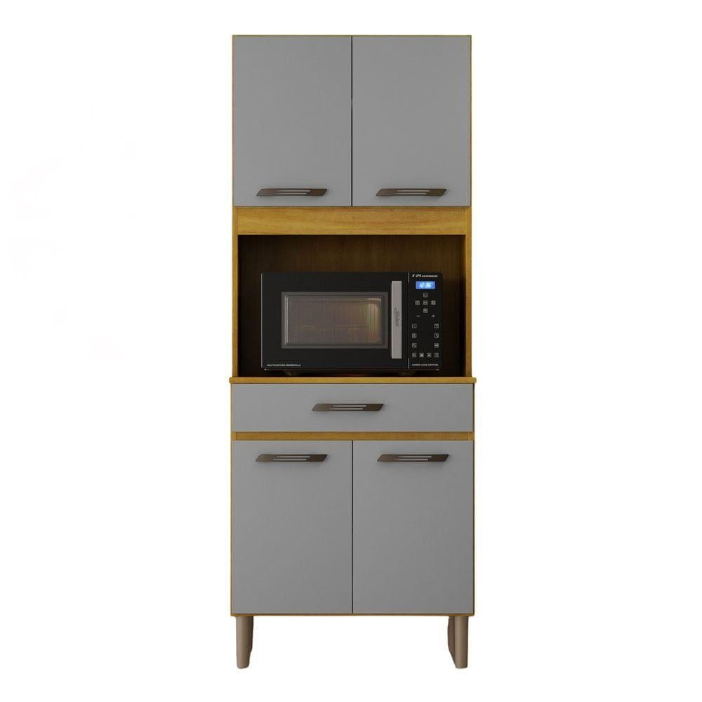 Armário De Cozinha Multiuso 4 Portas Com Espaço Micro-ondas Cinamomo/cinza Acetinado