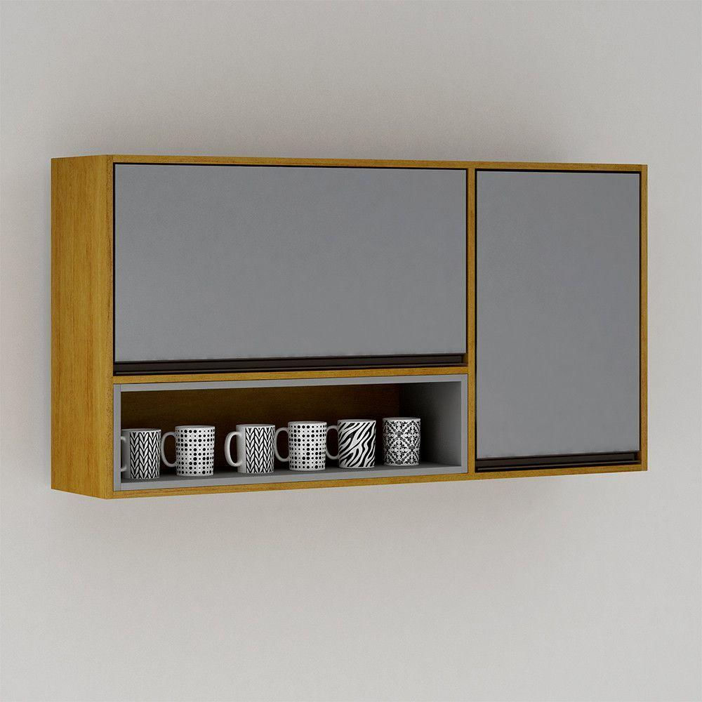 Armário De Cozinha Nala Aéreo Porta Condiment Mobilihouse Cinamomo/cinza Acetinado