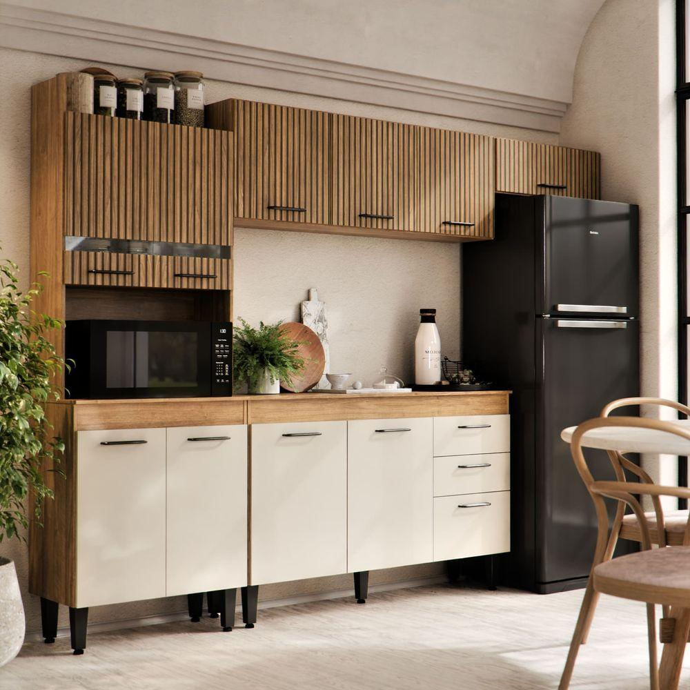 Armário De Cozinha Veneza Completa Com 2 Gavetas E 10 Portas Ripado Off - Maxi Do Brasil