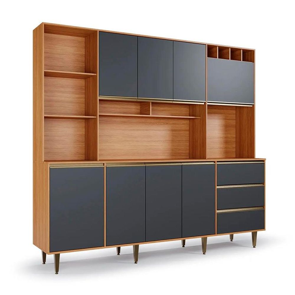 Armário de Cozinha Versatti 8 Portas 3 Gavetas Grafite e Freijó