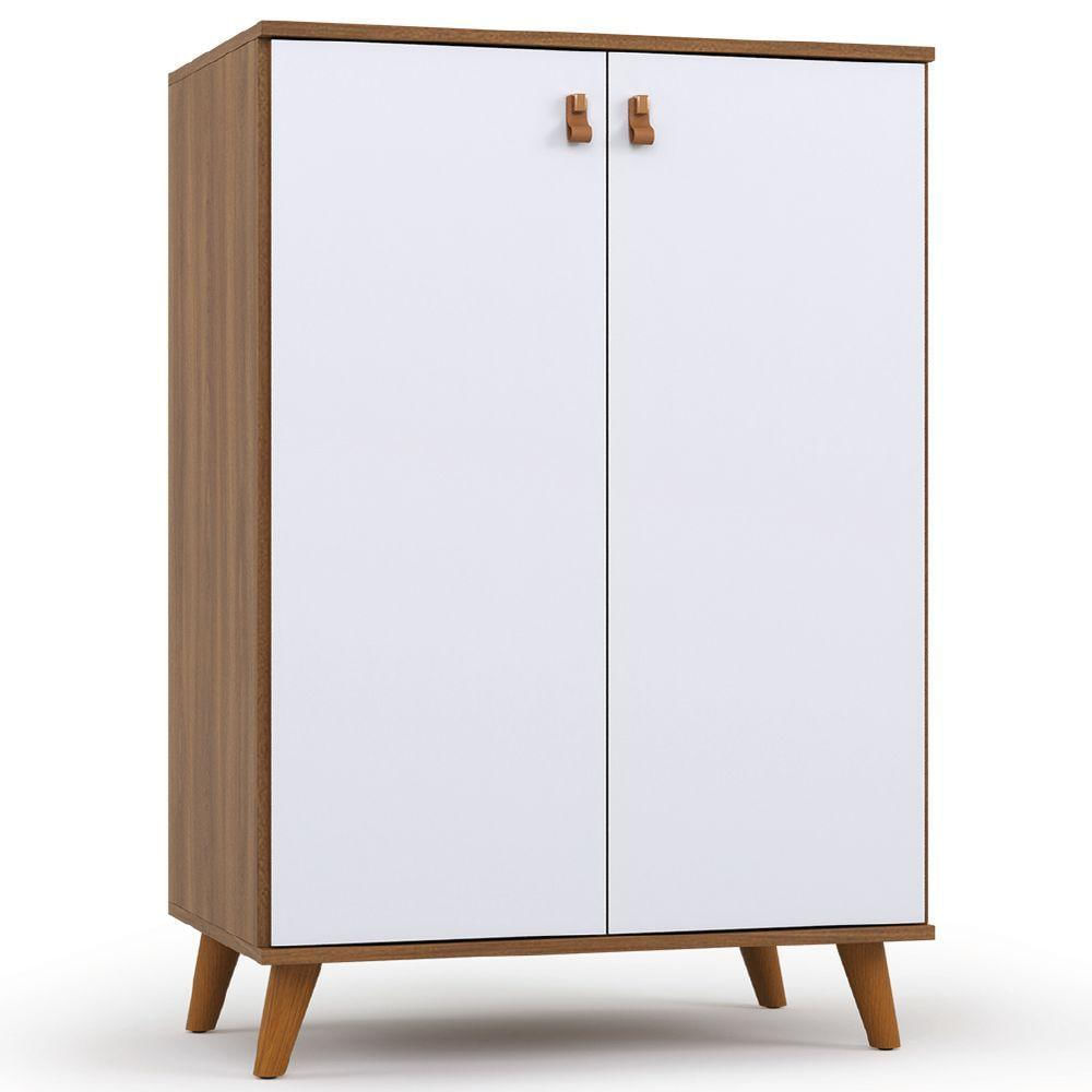 Armário Infantil Organizador Para Quarto Bebê 2 Portas Encanto Batrol Nogal/bco