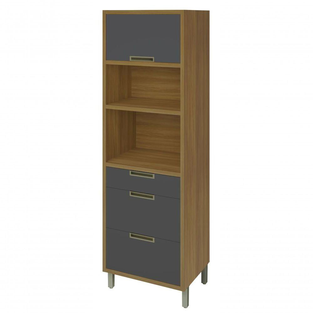Armário Paneleiro Torre Quente 1 Porta E 3 Gavetas Imperatriz Freijó Com Grafite - Nesher