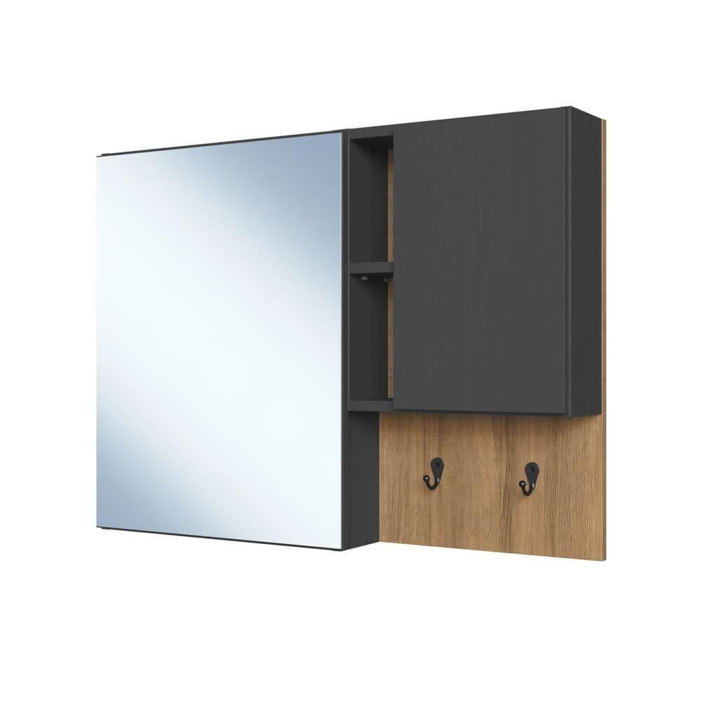Armario Para Banheiro Com Espelho 02 Portas 80cm Mel Grafite Proddy Mel Grafite