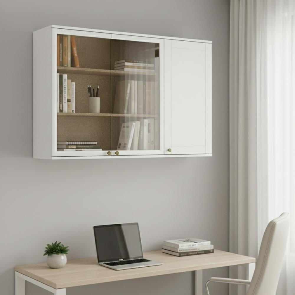 Armário Suspenso Com Portas De Vidro Para Escritório Branco Carraro