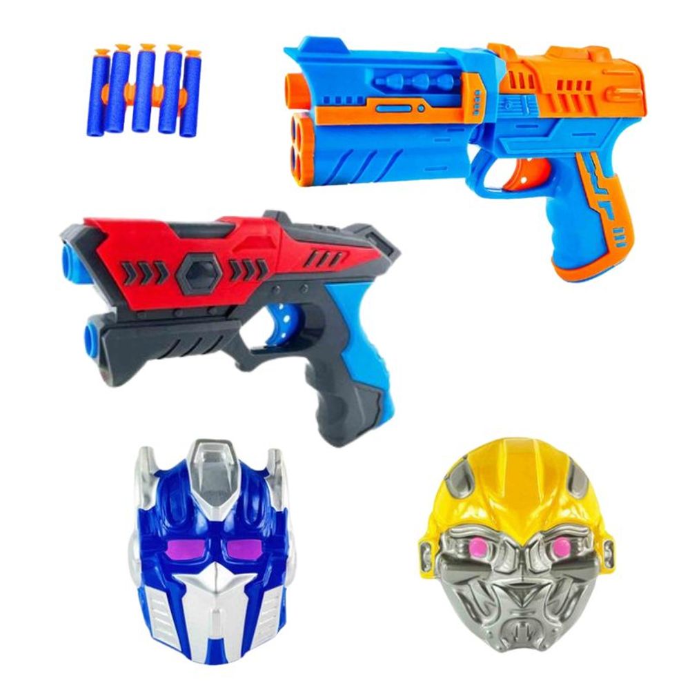 Os pequenos podem criar competições de pontaria, simular missões de ação ou simplesmente se divertir sozinhos, em dupla ou em grupos, estimulando a interação social e a criatividade.