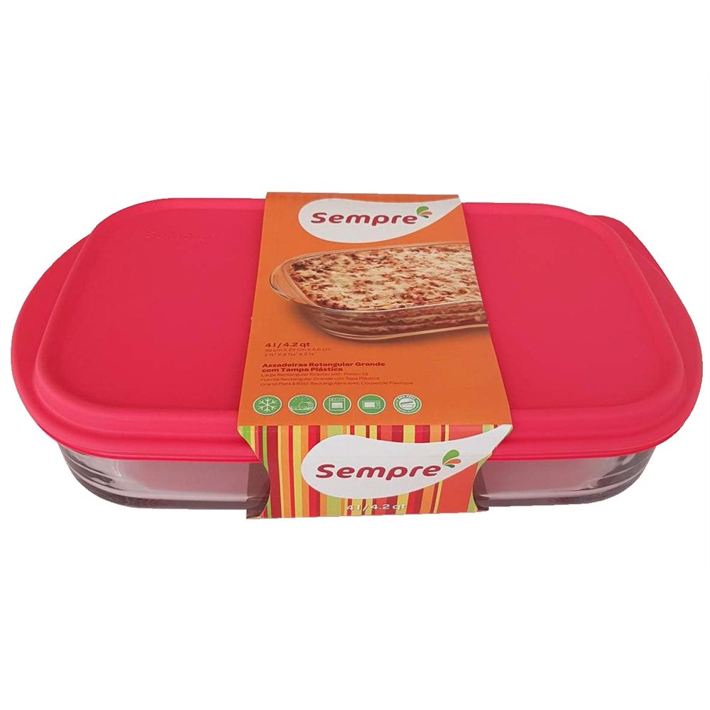 Assadeira Retangular de Vidro Tradicional Sempre com Tampa 4L - Nadir 6822