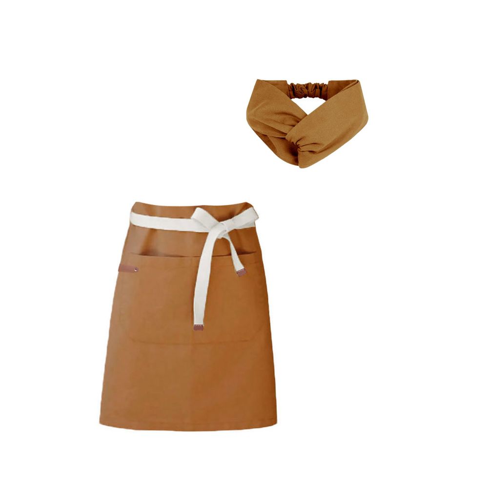 Avental Cintura e Faixa Turbante Caramelo Mostarda Bar Cafe