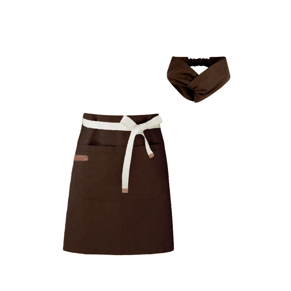 Avental de Cintura e Faixa Marrom Chef Cozinha Cafeteria Spa