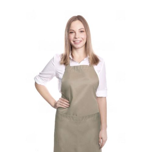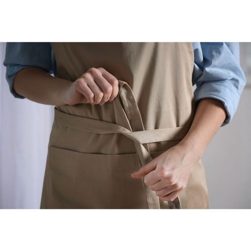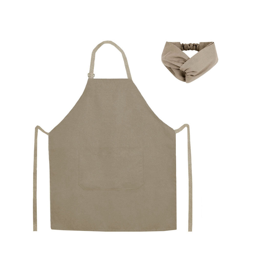 Avental e Faixa Bege Caqui Algodao Liso Cafeteria Bistro Confeitaria
