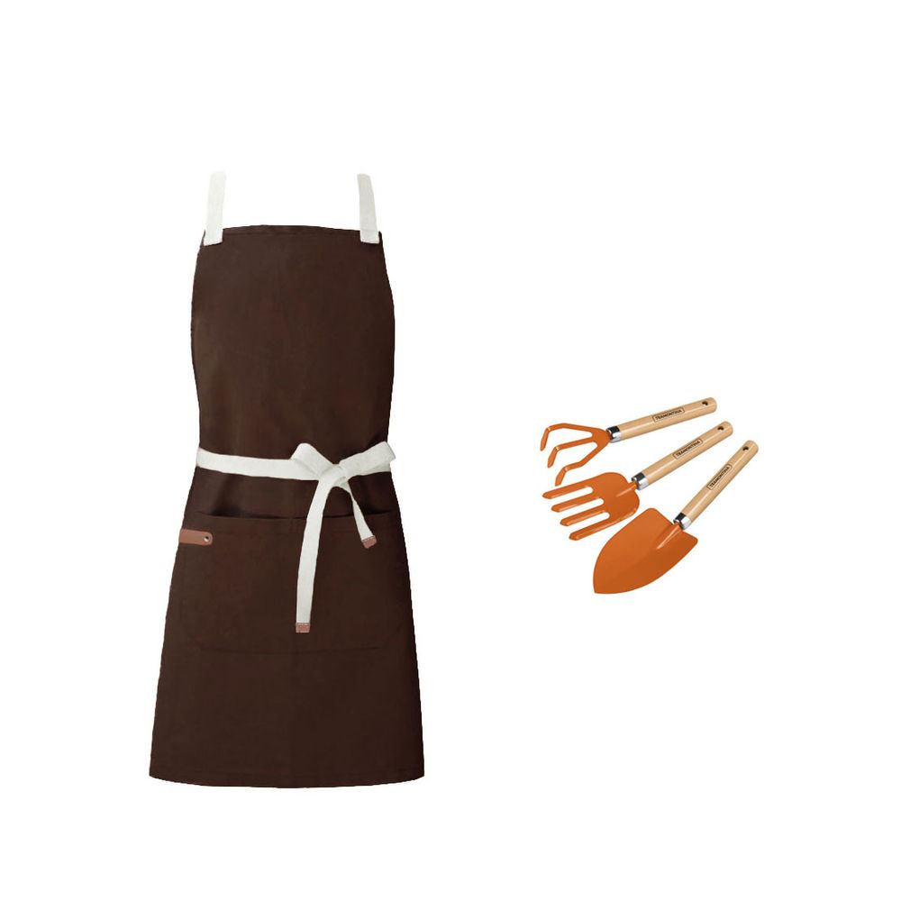 Avental Marrom e Kit Ferramentas de Jardinagem Unissex