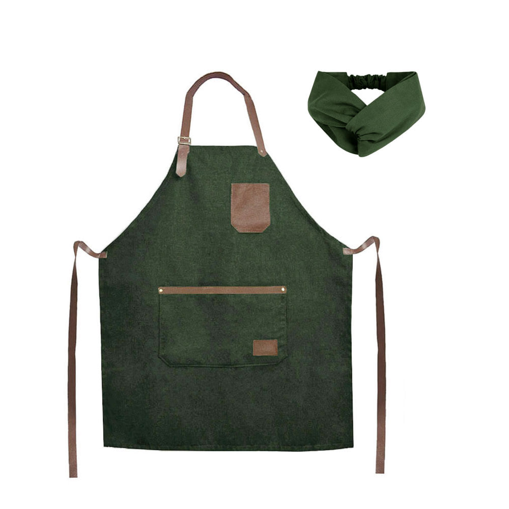 Avental Verde Couro Marrom Faixa Chef Cozinha Cafeteria Bar