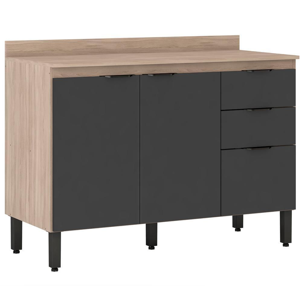 Balcão Para Cozinha - Linha Firenze, com visual clean e moderno, conta com excelente qualidade e acabamento de alto padrão, possui estrutura em MDP de 15mm e tampo de 25mm de espessura, acabamento em pintura UV. Composto por 02 gavetas com corrediças telescópicas com fechamento suave, 3 portas articuladas com dobradiças metálicas, sendo 01 porta menor abaixo das gavetas, prateleira interna com amplo espaço para armazenamento, equipado com puxadores cover em plástico ABS na cor Preto Fosco, acompanha pés com regulagem de altura na cor Preta. Este balcão é um módulo avulso da Composição Cozinha Firenze, confira em nosso site outros módulos desta linha, você pode compor sua cozinha da forma que desejar e fazer diversas combinações. Este móvel chegará em sua casa separado em 2 volumes. Módulo Balcão 120cm Com Tampo - 93241 Altura até o frontão do tampo 93 cm Altura 86 cm Largura 120 cm Profundidade 52 cm