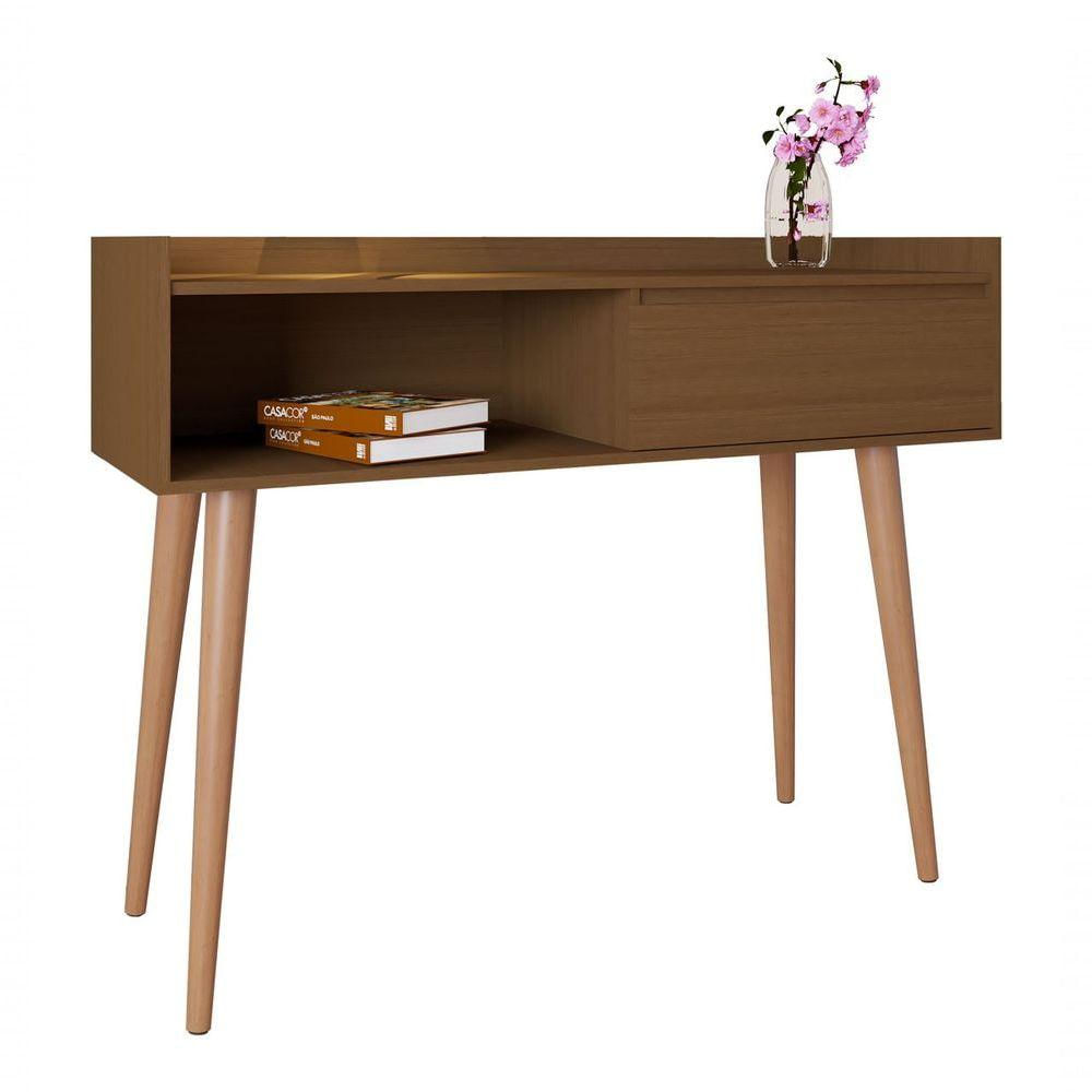 O Aparador Retrô Delux - MoveisAqui foi pensado para complementar sua sala de estar ou de jantar. Sua gaveta com corrediça telescópica e seu nicho garantem a acomodação de peças decorativas e seus pés inclinados estilo retrô em madeira pinus garante o charme ao móvel. Clássico e charmoso, é a melhor opção para seu ões do Produto Montado:Altura: 90 cm;Largura: 109 cm;Profundidade: 38 cm.Observações:- Produzido em MDP;- Gaveta com corrediças telescópicas;- Pés palito, estilo retrô, em madeira pinus;- Pintura ultravioleta com acabamento amadeirado.