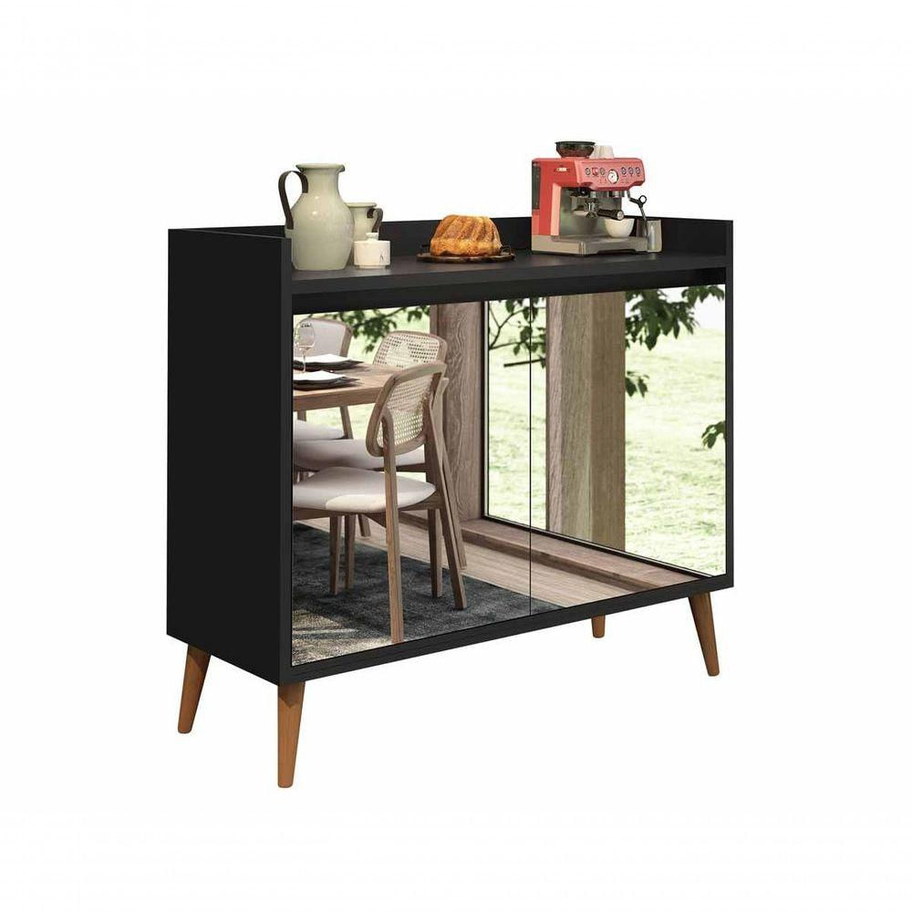 Balcão Buffet Retrô Com Espelho Delta 2 Portas Preto - Moveisaqui