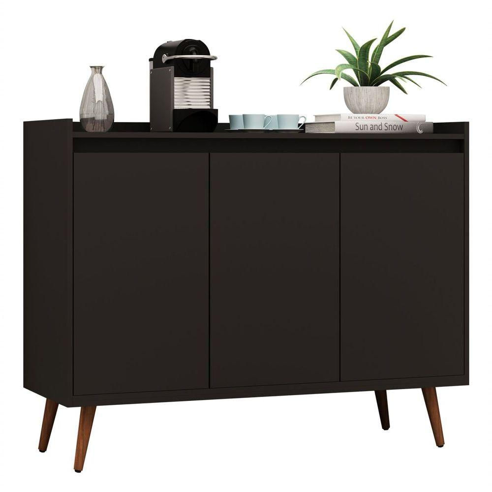 Balcao Buffet Retrô Delta 3 Portas Preto - Moveisaqui