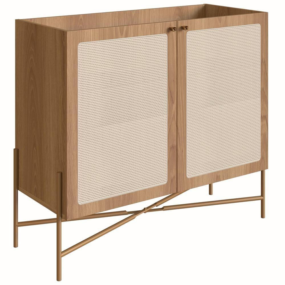 Balcão Buffet Bar / Café 28928, Linha Oslo Artesano. Traz como característica um traço artesanal, suave e acolhedor. Possui estrutura em MDP de 15mm, acabamento em pintura BP na cor Hanover (Fosco), e Pés de tubo metálico em aço e pintura epóxi na cor dourada, costas em HDF 3mm BP na cor branco. Composto por duas portas com dobradiças metálicas em aço com proteção anticorrosão, puxador de poliestireno na cor Dourado, aplique de tela sintética (PVC com poliéster), fixada na parte externa das portas, prateleira e divisão interna, as extremidades dos pés possuem ponteiras plásticas para evitar atrito do móvel com o piso. Com design escandinavo minimalista, é a opção ideal para um ambiente com toque sofisticado e ao mesmo tempo aconchegante. Mais produtos da Linha Oslo, você encontra em nosso site, podendo fazer a composição completa para sua casa, são diversos itens com design prático e funcional para tornar a vida mais facil e a casa mais alegre. Este móvel chegará em sua casa separado em 02 volumes.