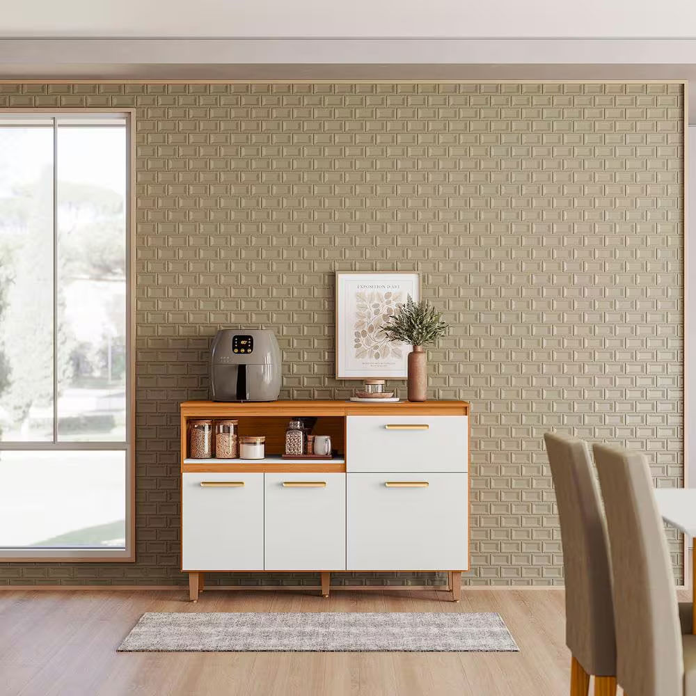 Balcão Cozinha Sicília 120cm 03 Portas 01 Gaveta Tampo MDP Poliman Freijó Off White Acetinado