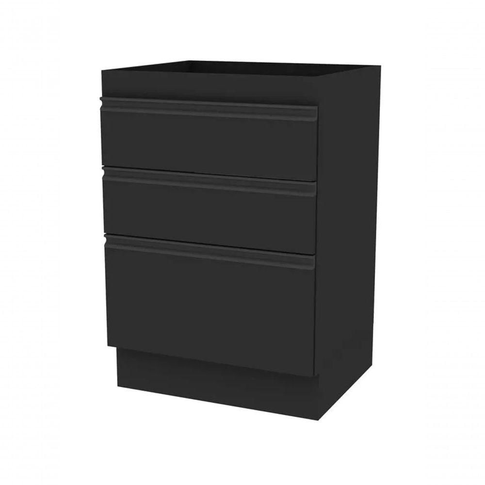O Balcão de Cozinha 60 cm com 3 Gavetas Planejado Funcional é a solução ideal para quem busca organização, praticidade e design moderno em cozinhas compactas ou planejadas. Com estrutura resistente e layout inteligente, oferece excelente aproveitamento interno com três gavetas, sendo duas gavetas estreitas e um gavetão, ideal para utensílios, mantimentos e itens do dia a dia. A primeira gaveta conta com separador de talheres, garantindo ainda mais organização e praticidade no uso diário.Fabricado em MDP de 1,5 cm de espessura, o balcão garante durabilidade, estabilidade e segurança. As gavetas possuem corrediças telescópicas de abertura total, proporcionando deslizamento suave e silencioso, oferecendo conforto e facilidade no manuseio. O perfil puxador em alumínio, com ponteiras em ABS, adiciona um visual moderno e sofisticado ao móvel.O produto acompanha cantoneiras metálicas e parafusos para fixação do tampo superior (vendido separadamente). Para maior resistência estrutural, o tampo inferior é fixado abaixo das laterais, garantindo mais estabilidade e durabilidade. Todos os padrões recebem sete camadas de pintura UV, oferecendo acabamento uniforme, resistente e proteção contra desgastes do uso diário.Onde UsarCozinhas planejadas ou compactasÁreas de dispensa que necessitam de organização funcionalAmbientes que exigem otimização de espaço, praticidade e versatilidadeCuidados e LimpezaLimpar com pano levemente umedecido e finalizar com pano secoEvitar produtos abrasivos ou solventes químicosGarantir instalação correta para maior segurança e durabilidade do balcãoDestaquesEstrutura em MDP de 1,5 cm resistente e durável3 gavetas: 2 estreitas e 1 gavetão, com separador de talheres na primeiraCorrediças telescópicas de abertura total, suaves e silenciosasPerfil puxador em alumínio com ponteiras em ABSFixação segura com cantoneiras metálicas e parafusosTampo inferior fixado abaixo das laterais para maior resistênciaPintura UV com 7 camadas, acabamento durável e sofisticadoDesign moderno, funcional e elegante para qualquer cozinhaFicha TécnicaMaterial: MDPEspessura do material: 1,5 cmAltura: 88 cmLargura: 60 cmProfundidade: 51,5 cmQuantidade de gavetas: 3Tipo de gavetas: 2 gavetas estreitas e 1 gavetãoCorrediças: Telescópicas de abertura totalSeparador de talheres: Sim (na primeira gaveta)Puxador: Perfil em alumínio com ponteiras em ABSTampo superior: Vendido separadamenteFixação: Cantoneiras metálicas e parafusosAcabamento: Pintura UV com 7 camadasTipo de móveis de cozinha: Balcão | Requer montagem: Sim | Cor: Onix
