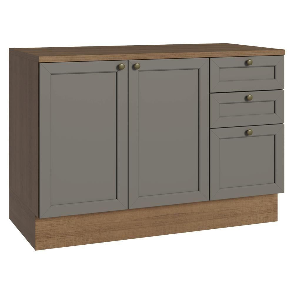Balcão De Cozinha 120 Cm 2 Portas 3 Gavetas Rustic/cinza Vik Madesa Rustic/cinza