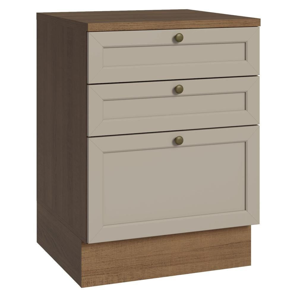 Balcão De Cozinha 60 Cm 3 Gavetas Rustic/crema Vik Madesa Rustic/crema