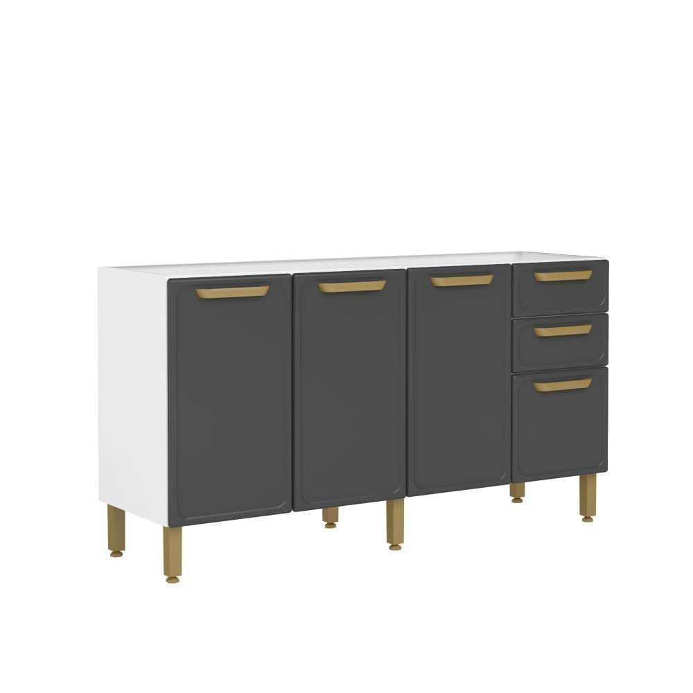 Balcão De Cozinha Em Aço 160cm 4 Ptas 2 Gav Bella Bertolini - Grafite/branco Grafite/branco