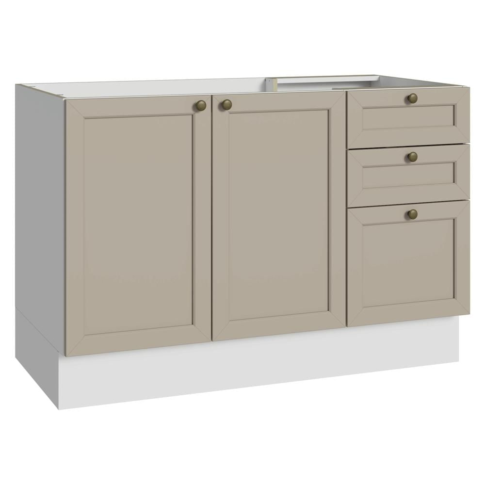 Balcão de Pia 120 cm 2 Portas 3 Gavetas (Sem Tampo) Branco/Crema Vik Madesa Branco/Crema