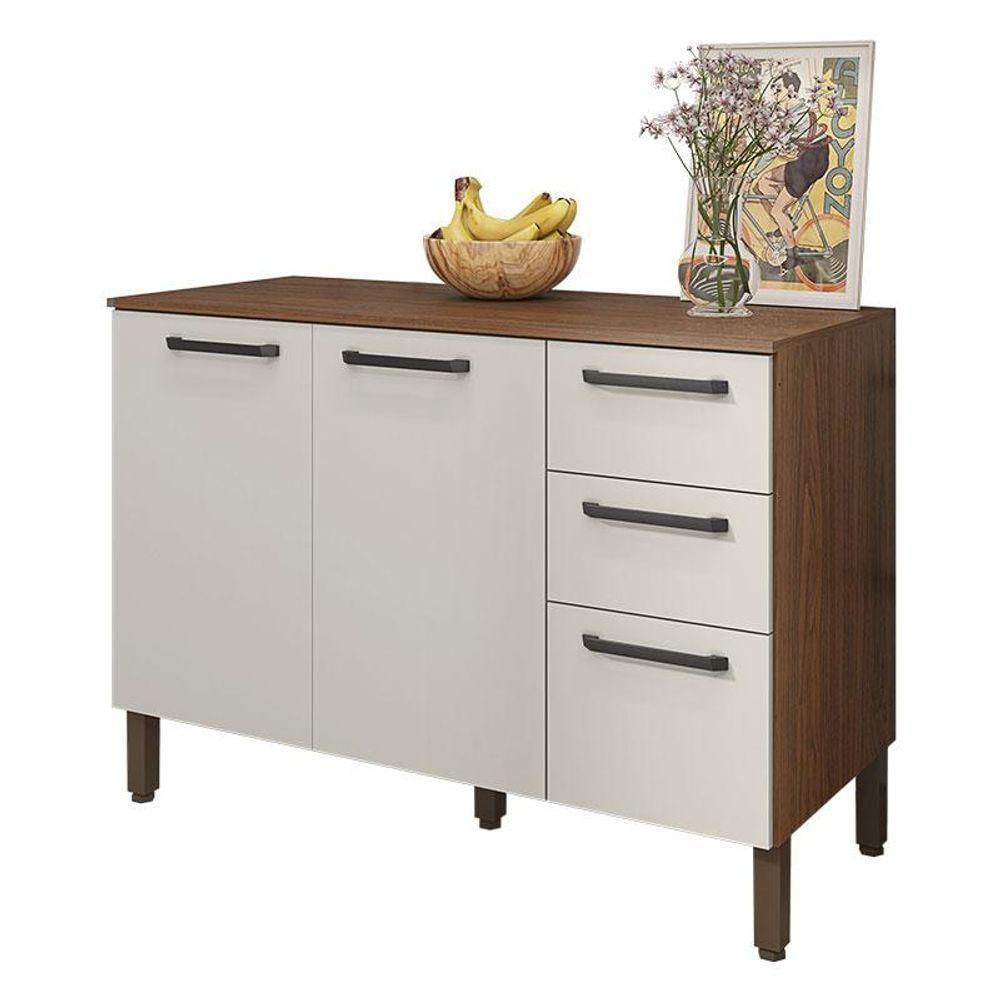 Balcão De Pia Mad Versalhes 120 Cm Com Tampo Nogueira Off White - Kits Paraná