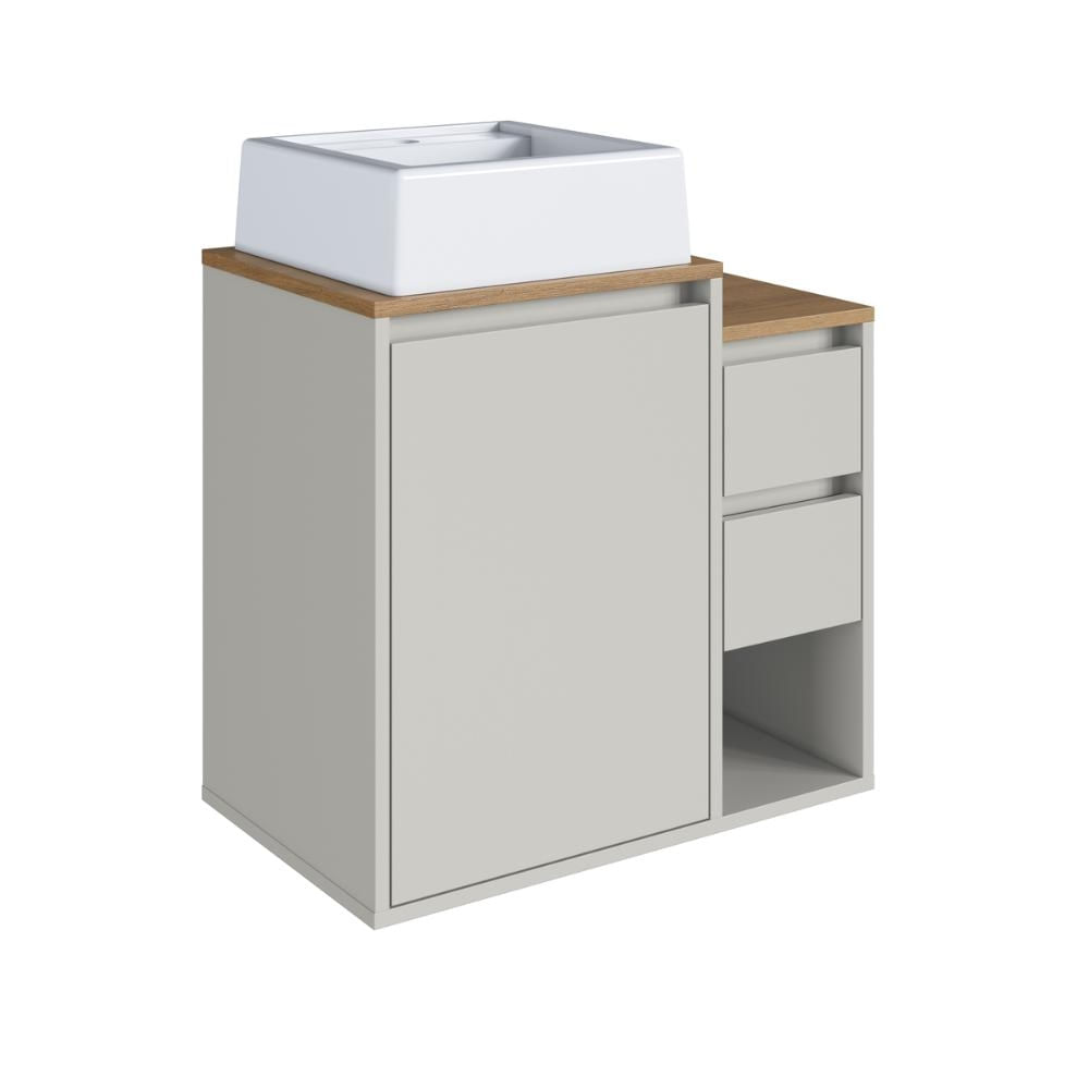 Balcão Gabinete de Banheiro Suspenso 60 Bahamas 1 Porta e 2 Gavetas Arenas com Cuba Branca