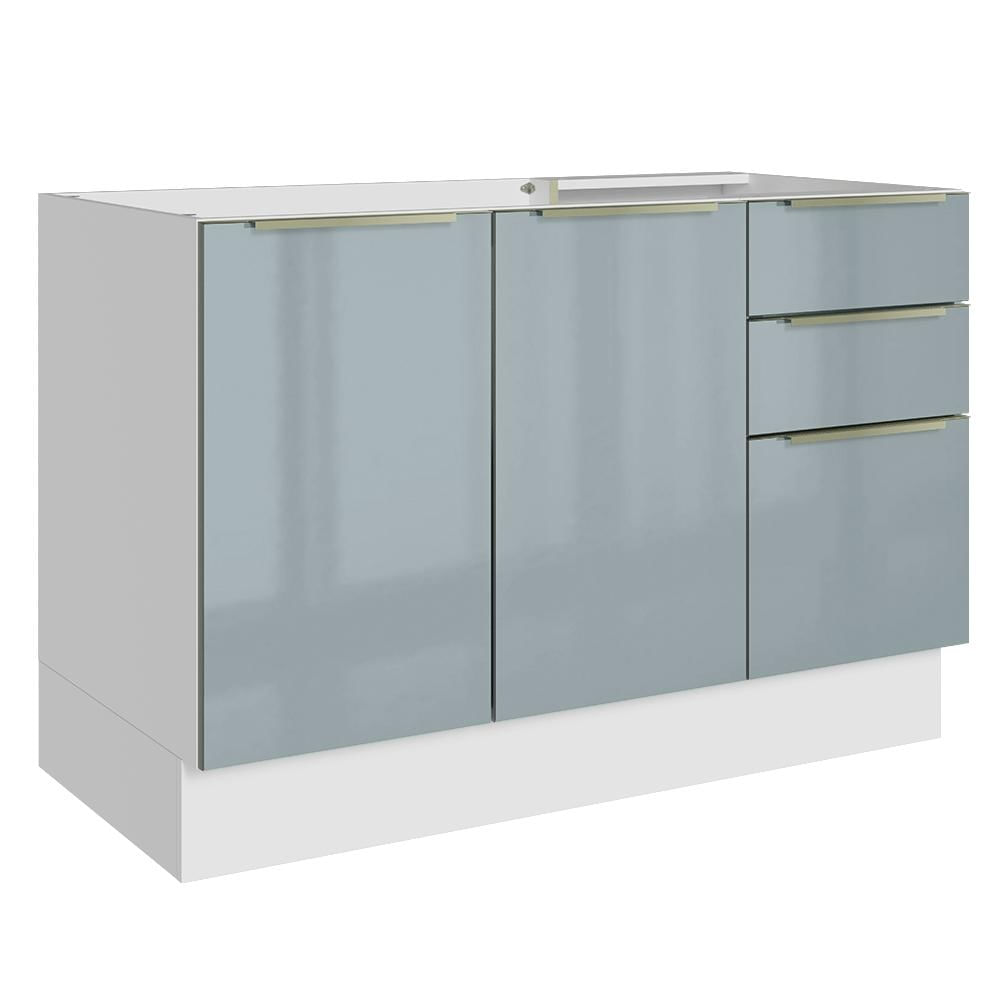Balcão Gabinete de Pia 120 cm 2 Portas 3 Gavetas (Sem Tampo) Branco/Cinza Lux Madesa Branco/Cinza