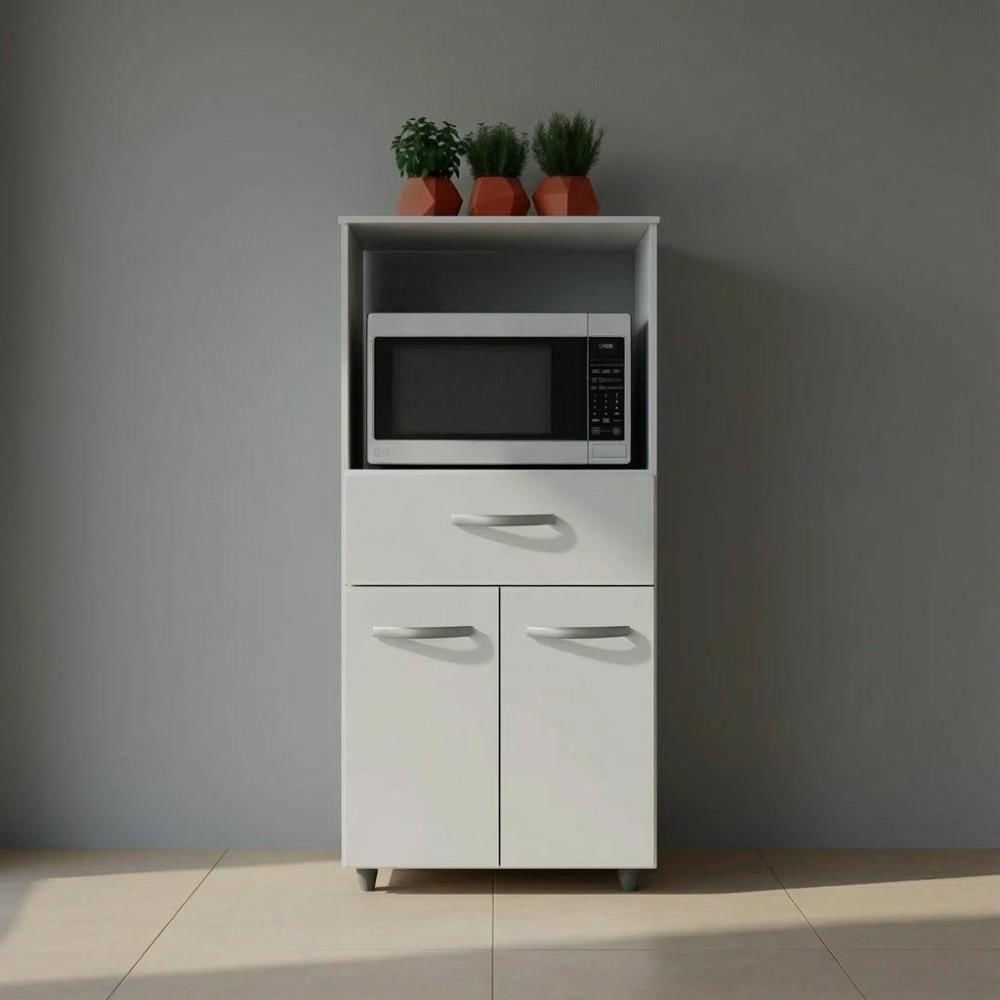 Balcão Multiuso Para Cozinha 2 Portas 1 Gaveta Com Nicho Branco Branco
