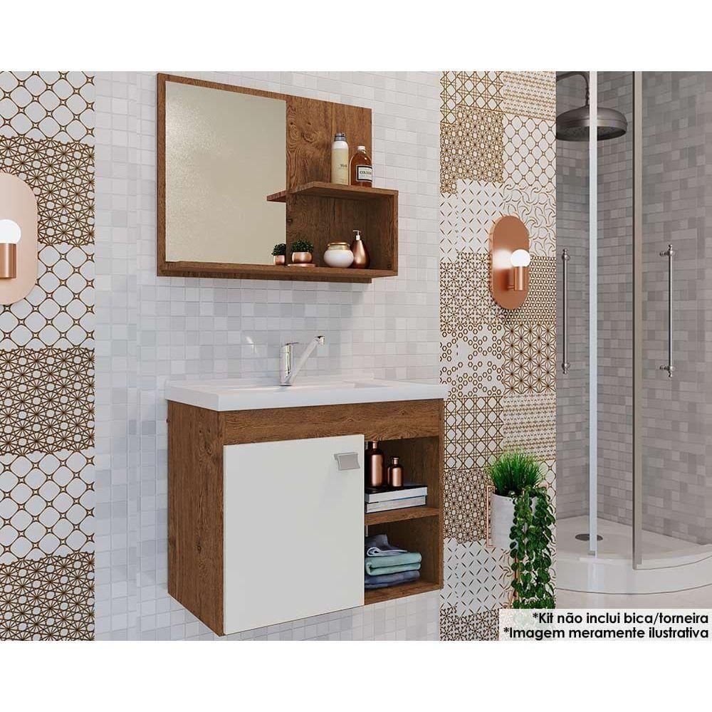 Balcão Para Banheiro Suspenso LótuSem bia Com Cuba 55cm E Armário Com Espelho Amendoa-branco - Mgm