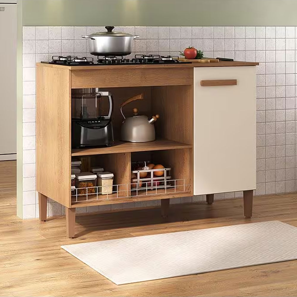 Balcão Para Cooktop de até 5 Bocas Atualle Madri 109 cm 1 Porta MDF Canelato/Off White