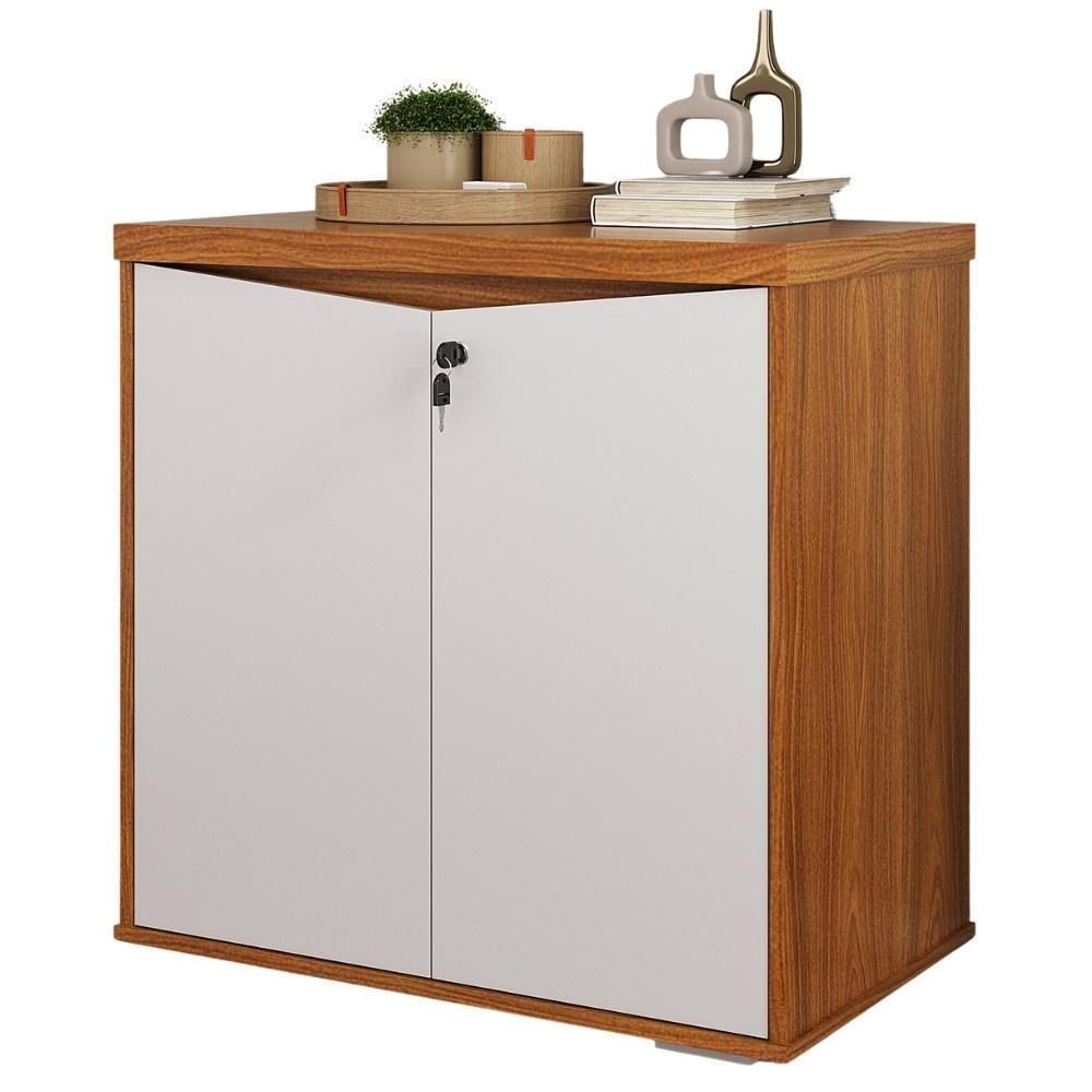 Balcão Para Escritório Com Chave Multiuso 2 Portas Unik A02 Freijó Branco - Lyam Decor