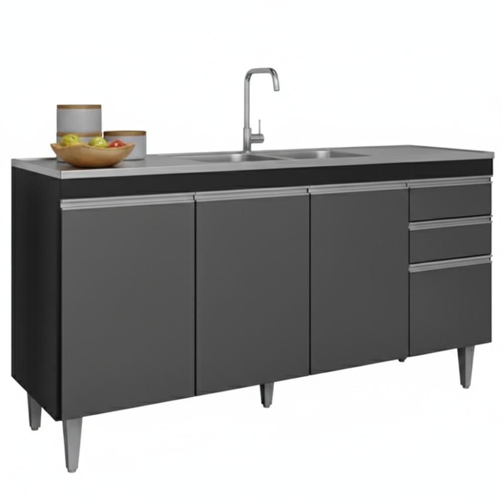 Balcao Para Pia 4 Portas 2 Gavetas Bp 150 Cm Ayla Preto Grafite Grafite
