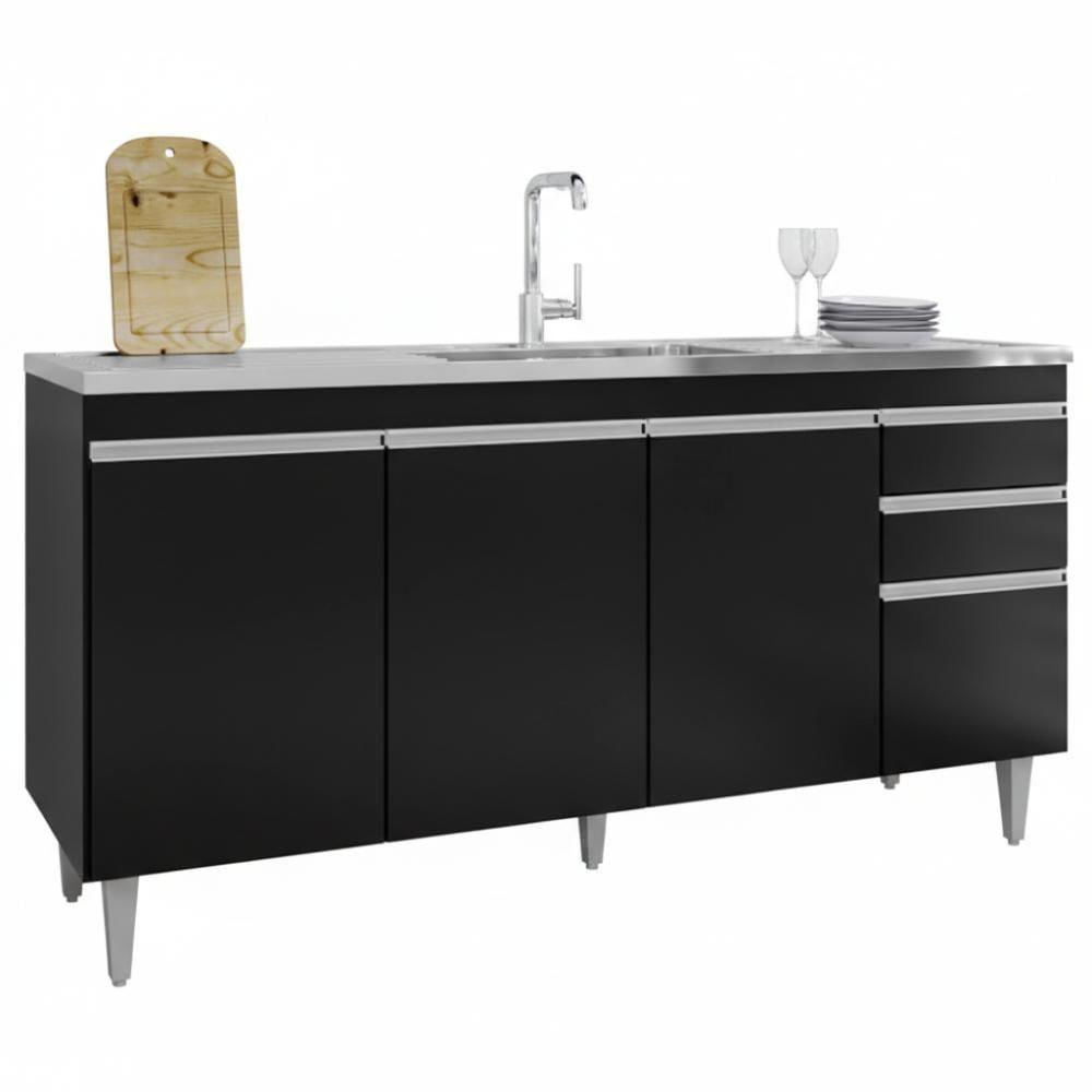 Balcao Para Pia 4 Portas 2 Gavetas Bp 160 Cm Lorena Preto