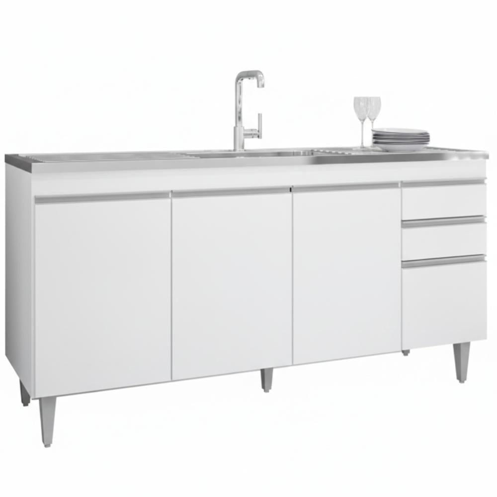 Balcao Para Pia 4 Portas 2 Gavetas Bp 180 Cm Agatha Branco