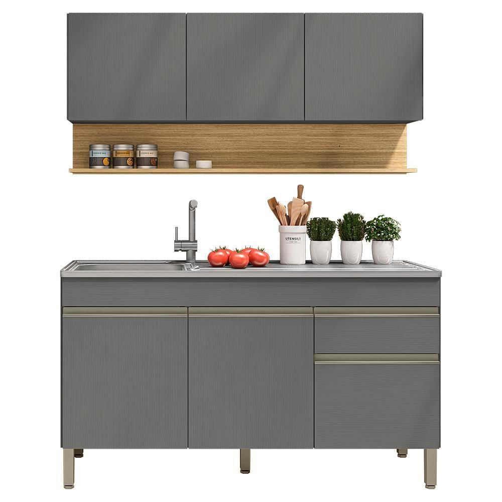 Balcao Para Pia E Armario Aereo 150 Cm Line Gris Cp Freijo Ktp
